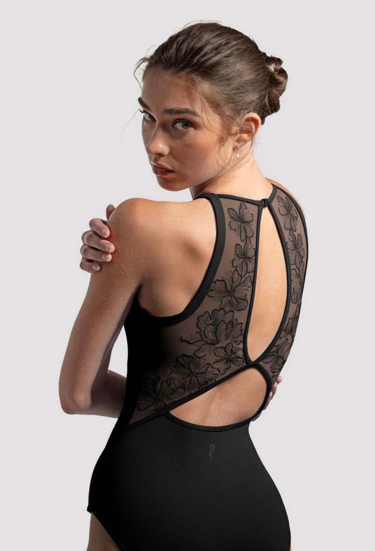 The Ladies Iris Floral Halterneck Leotard combines beautiful floral embroidery and corset-inspired seams for a timeless and romantic look. The high soft mesh neck and halterneck straps provide support and a ballet leg line elongates the silhouette. With a double open back and clip closure, this leotard offers both style and functionality. Made with high-quality materials, it's perfect for dancers looking for technical precision and confidence in every movement. Add this stunning piece from Bloch’s Camellia Collection to your dancewear wardrobe today.