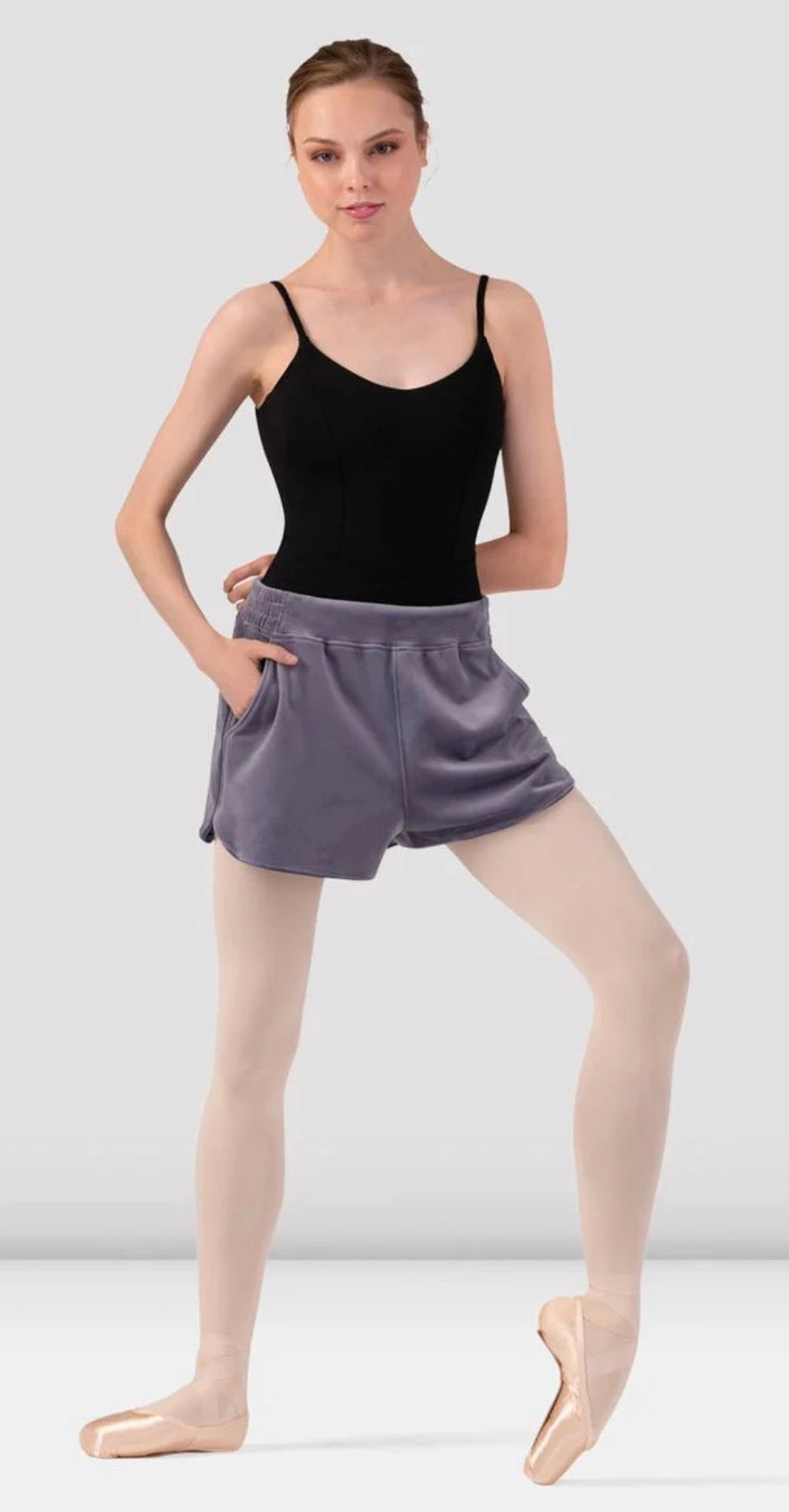 Experience the epitome of elegant comfort in our Ladies Debby Velvet Shorts. These shorts feature a high ruched waistband for convenient pull on styling, functional dual side pockets and can be paired with your Favourite leotard to keep you warm in class.